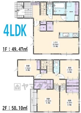 LDK16畳(1F)、洋6.3畳(2F)、洋5畳(2F)、洋4.6畳(2F)、洋4.5畳(2F) |