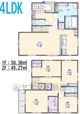LDK17畳(1F)、洋6.3畳(2F)、洋5畳(2F)、洋4.8畳(2F)、洋4.5畳(2F) |