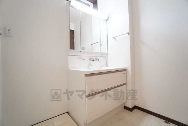 三面鏡裏収納付き洗面化粧台です^^ 歯磨きセットやスキンケア用品などの収納に便利ですね。