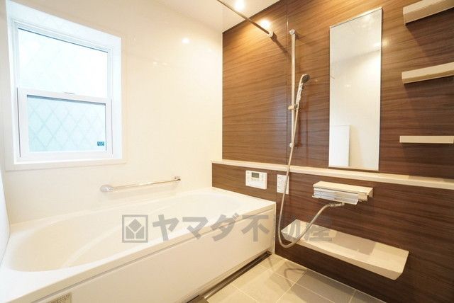 1日の疲れを癒すくつろぎのバスルーム。足を伸ばしてもゆったりと入れるサイズです。お子様と一緒にお風呂に入っても狭くないですね^^