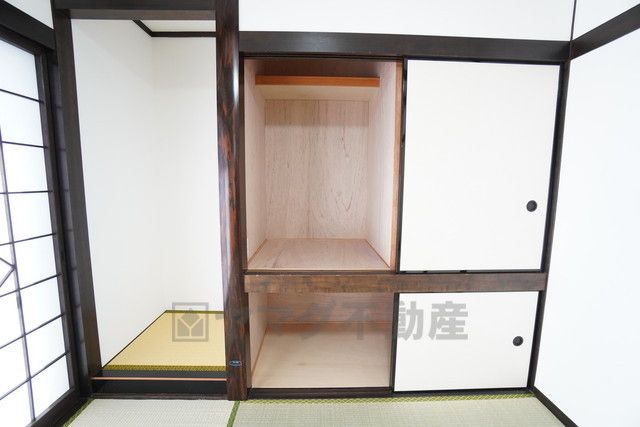和室には、使い勝手の良い収納スペース有。押入れタイプで奥行きがあり、布団や季節物もしっかり収納可能です。