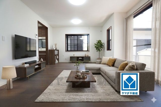 大きな掃き出し窓のあるリビングは、陽光あふれる明るい空間です。ゆったりと寛げる憩いの場となりそうです。家具はCGによるイメージ画像です。