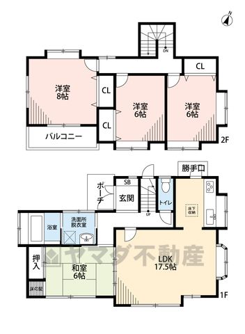 LDK17.5畳(1F)、和6畳(1F)、洋8畳(2F)、洋6畳(2F) |