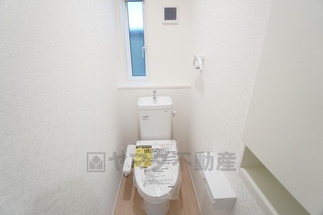 清潔感のある使い勝手の良いトイレで、毎日気持ちよくお使いいただけます。温水洗浄便座付きで、季節を問わず快適にご利用いただけます^^小窓付きで換気に便利^^