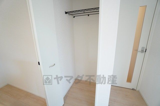 洋室にはラック付きのクローゼットが設けられています。たっぷり収納できるので衣替えの心配もいりませんね^^