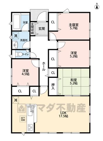 LDK17.5畳(1F)、洋5.7畳(1F)、和5.2畳(1F)、洋5.2畳(1F)、洋4.5畳(1F) |