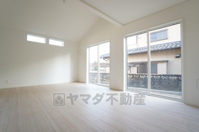 勾配天井で開放感^^大きな掃き出し窓のあるリビングは、陽光あふれる明るい空間です。ゆったりと寛げる憩いの場となりそうです。