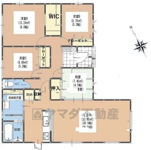 LDK20.5畳(1F)、和4.5畳(1F)、洋8畳(1F)、洋5.2畳(1F) |