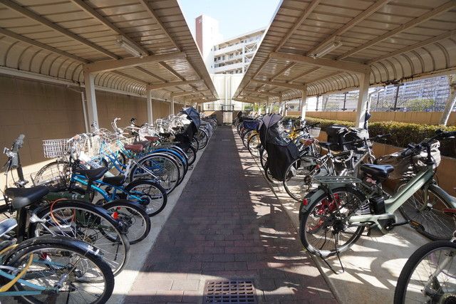 屋根付き駐輪場完備。清掃と管理により、常に清潔で安全な環境を維持しています。