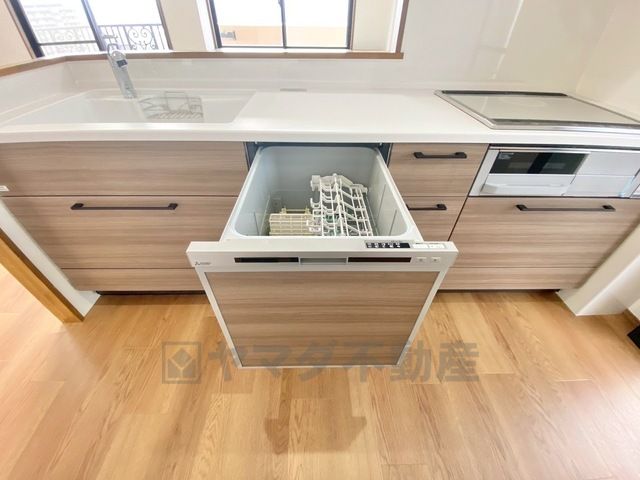 炊事時間を大幅に短縮できる食器洗浄乾燥機付き^^食器を洗う手間が減るので家族とのコミュニケーションの時間や自分の時間が増えますね。