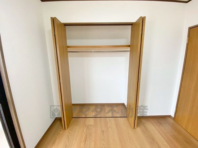 洋室にはハンガーパイプ付きのクローゼットが設けられています。たっぷり収納できるので衣替えの心配もいりませんね^^
