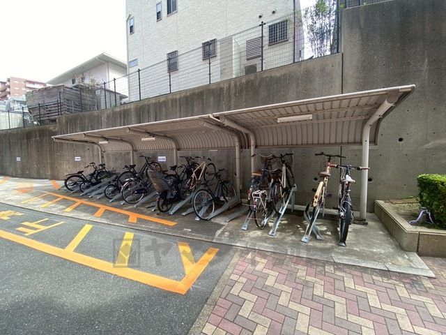 屋根付き駐輪場完備。清掃と管理により、常に清潔で安全な環境を維持しています。